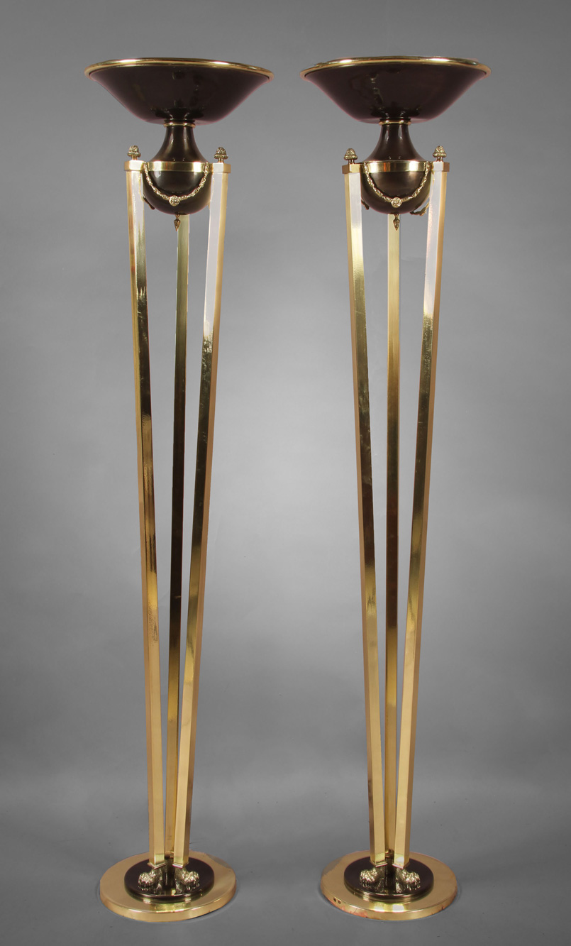 PAR DE LAMPARAS ALTAS DE BRONCE DORADO Y EMPAVONADO.