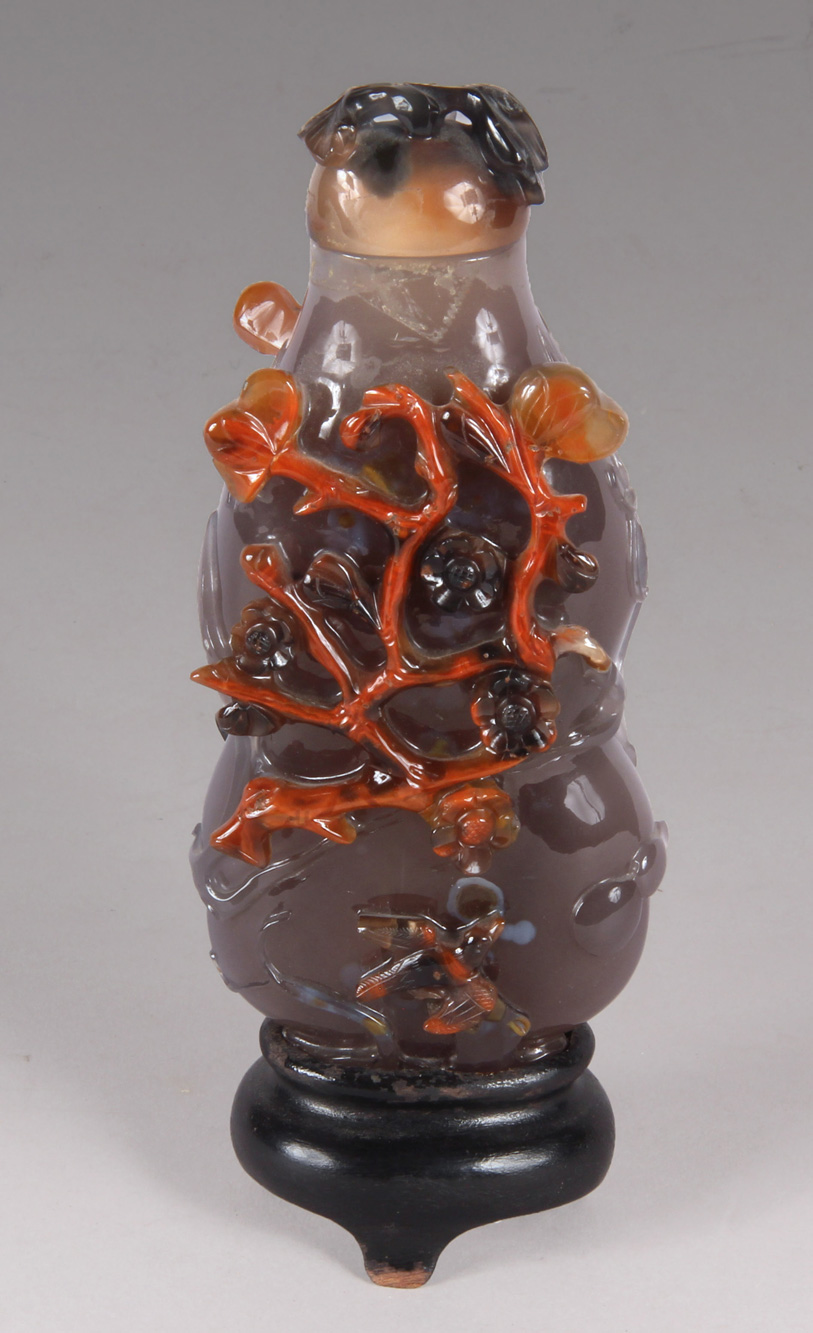 PEQUEÑO POTICHE CHINO DE AGATA ESCULPIDA CON TAPA.