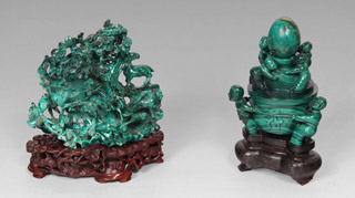 Lote 10 DOS PIEZAS CHINAS DE MALAQUITA ESCULPIDA. |