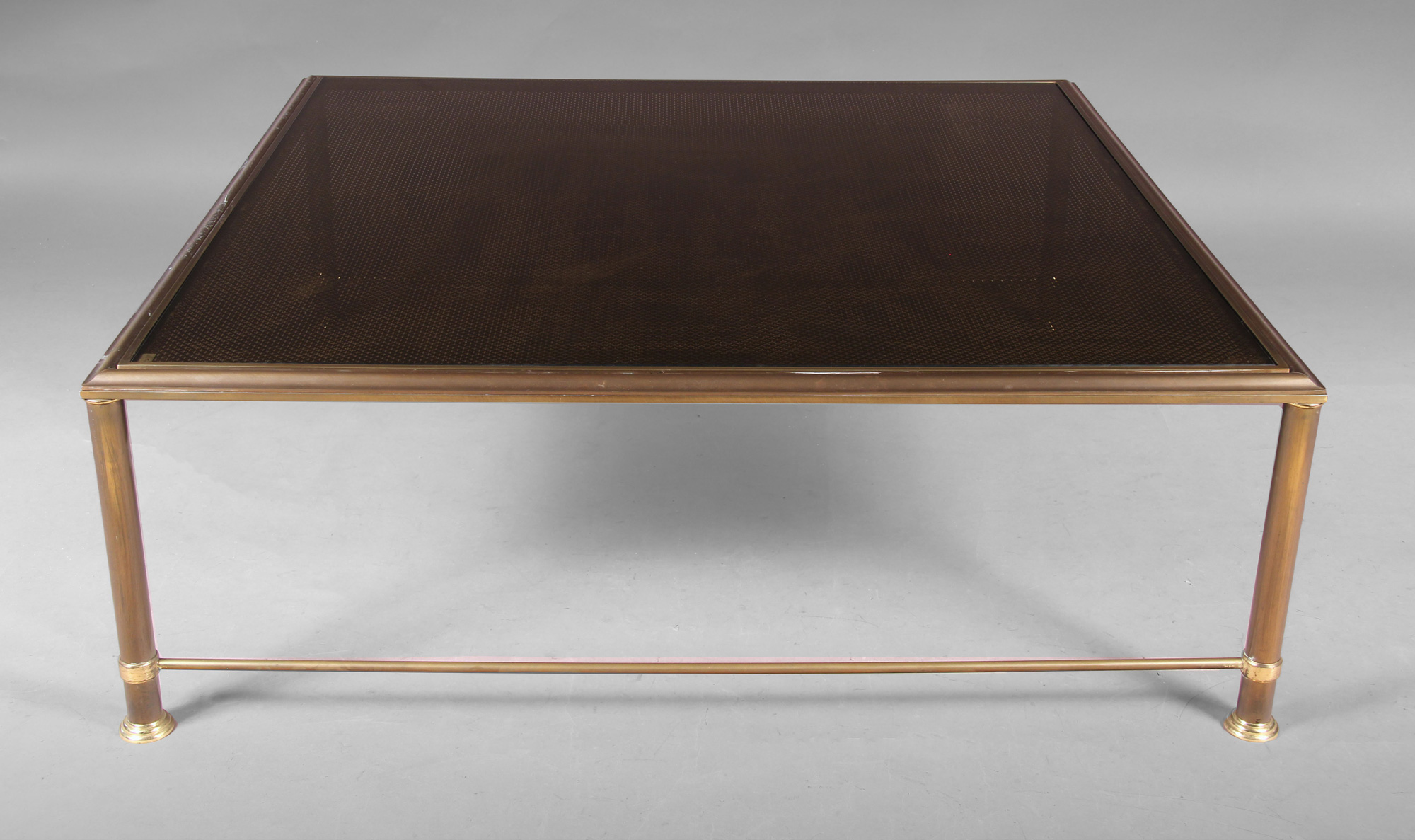 Armazón de bronce empavonado. Tapa con malla calada y vidrio fumé.