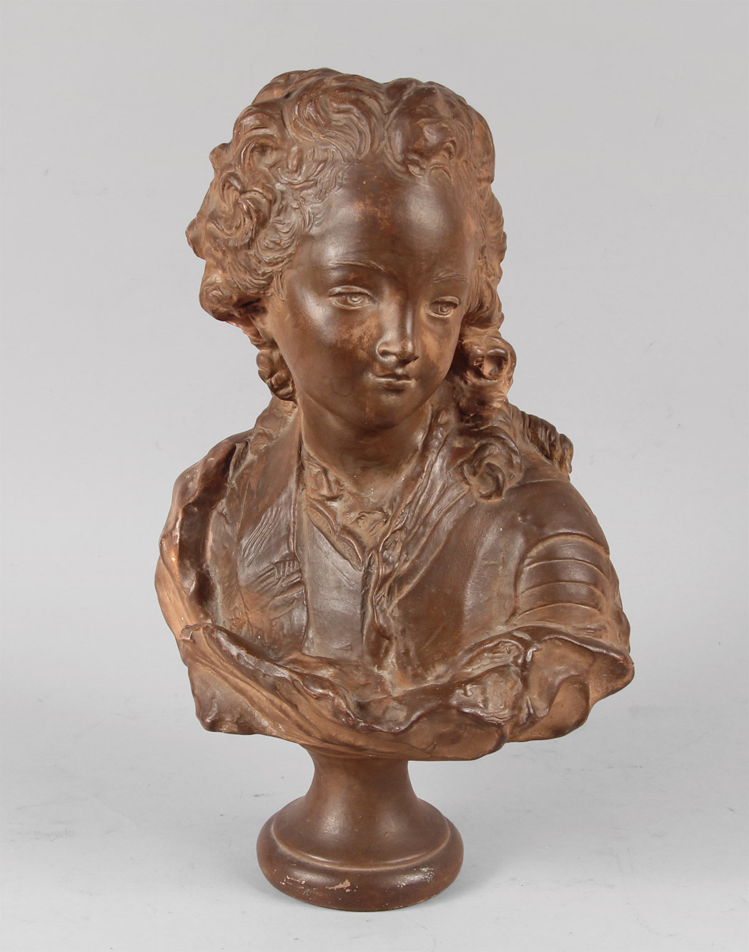 BUSTO FRANCES DE TERRACOTA PATINADA.