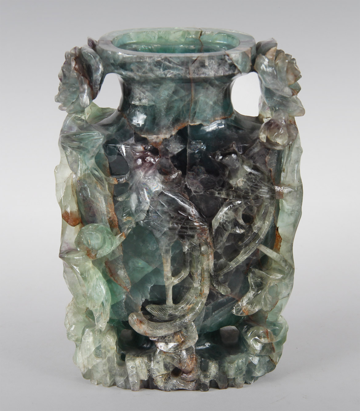 VASO CHINO DE RAIZ DE ESMERALDA ESCULPIDA.