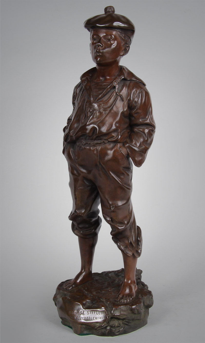 Escultura francesa de bronce con pátina marrón. Firmada V. SZCZBLEWSKI en la base. Pieza numerada y sellada L. V Deposee.