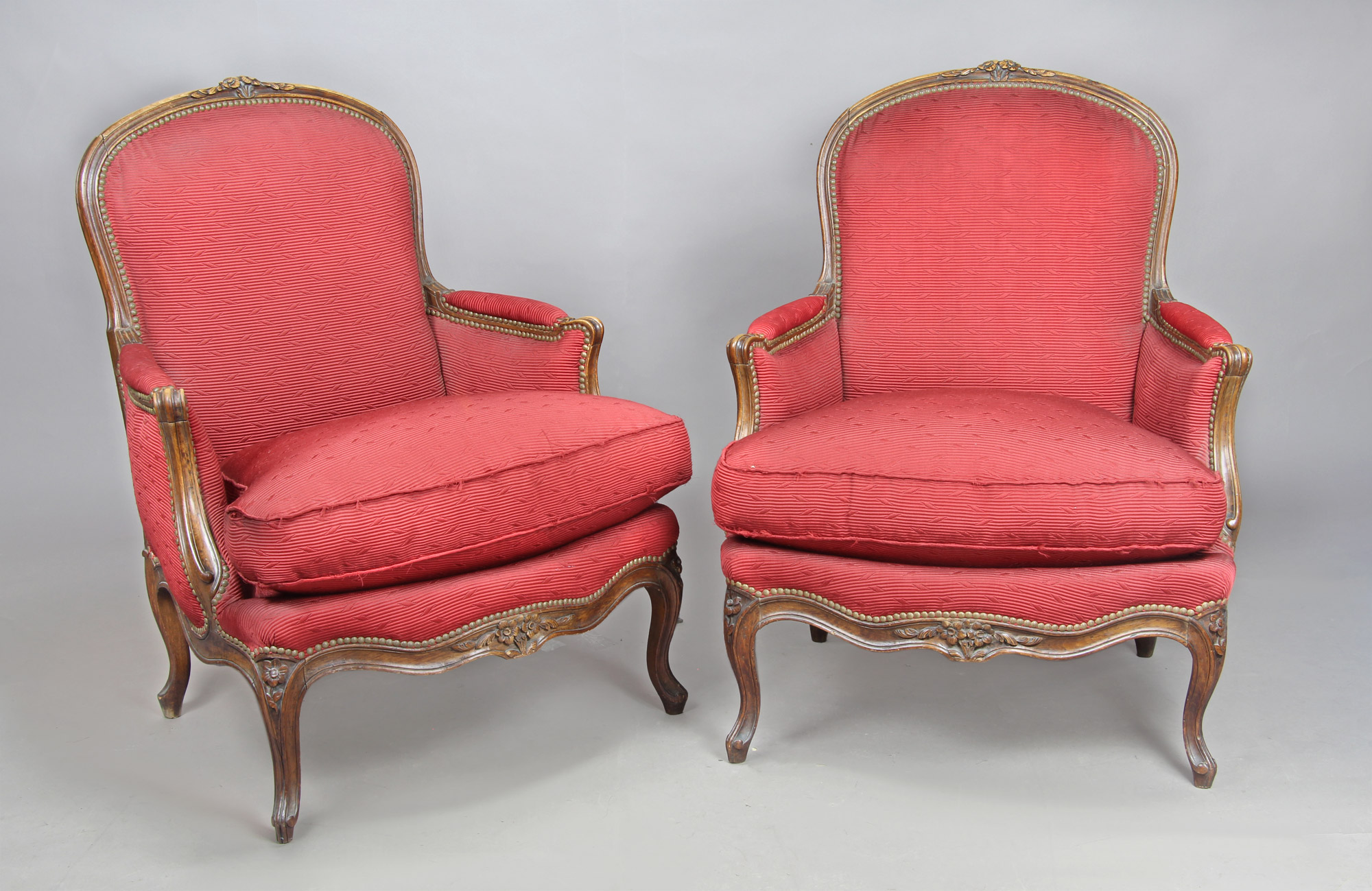 PAR DE SILLONES BERGERE DE ESTILO FRANCES LUIS XV.