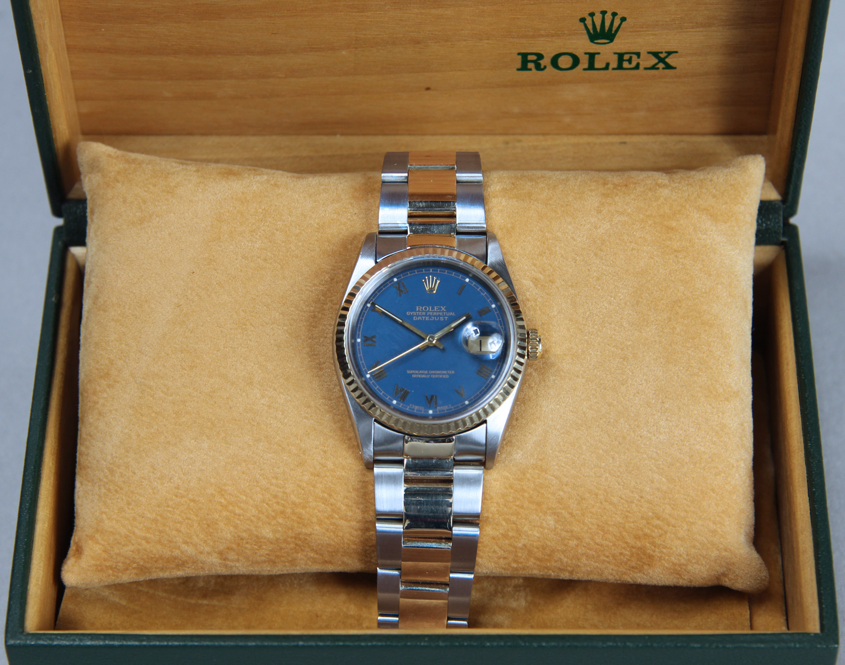 Reloj automático ejecutado en acero y oro. Modelo OYSTER PERPETUAL DATE JUST. Estuche original, manual y garantía. Referencia Nº 16233.