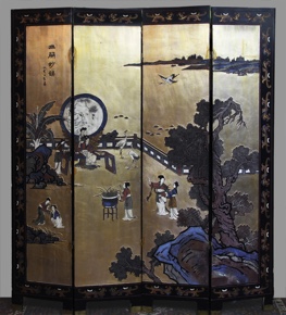 Lote 248 PEQUEÑO BIOMBO CHINO PINTADO A MANO DE CUATRO HOJAS. |