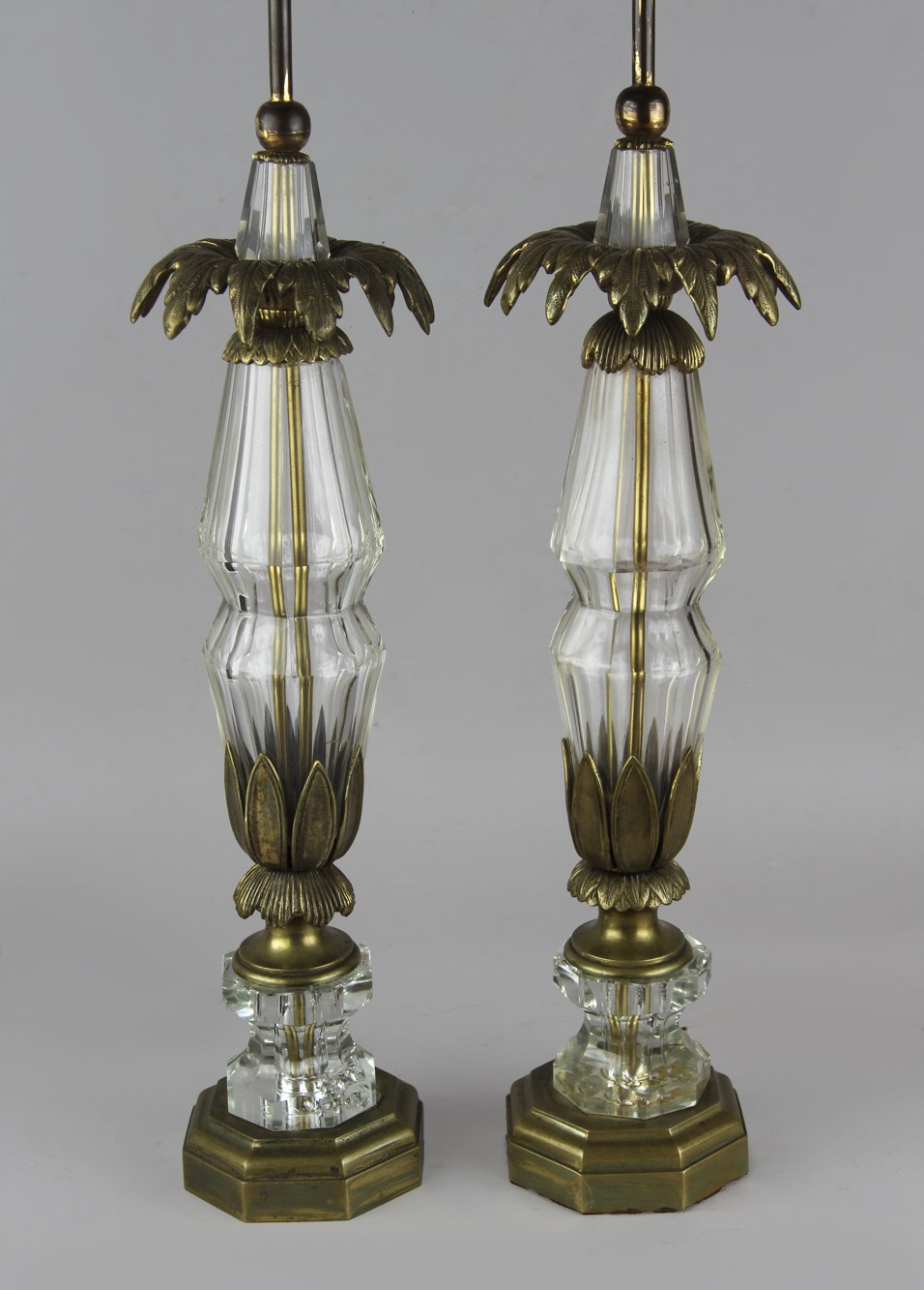 PAR DE LAMPARAS DE APOYO CON CUERPOS FACETADOS.